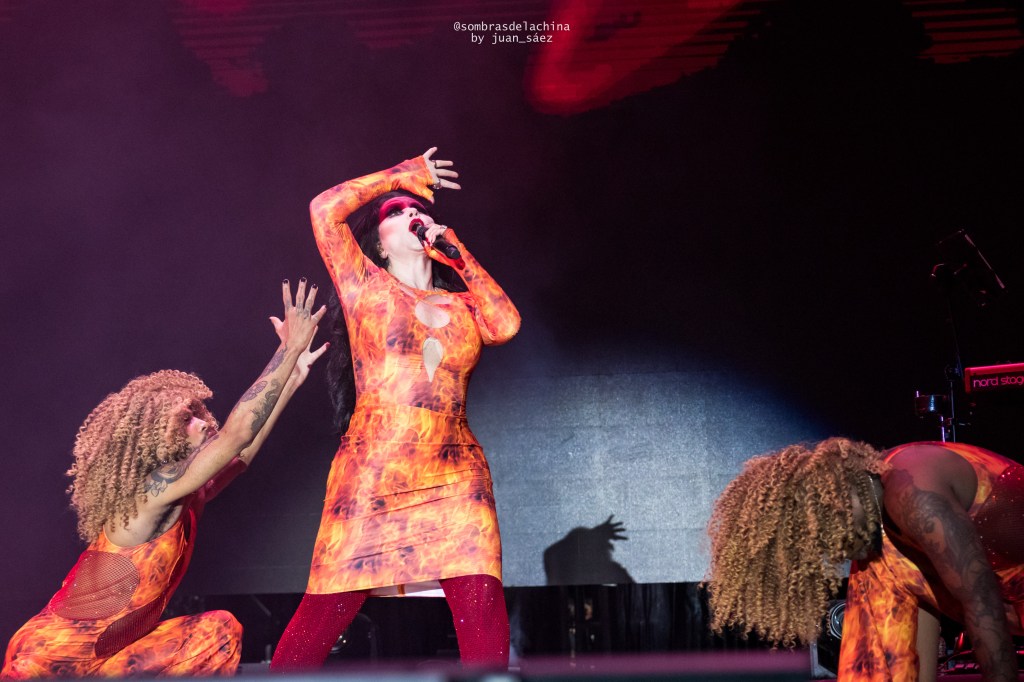 Ya bien entrada la noche, y después de que muchos pudieran retomar fuerzas con una amplia oferta gastronómica en la zona de servicios, se subían al escenario Fangoria. Alaska, Nacho Canut, y el gran elenco de bailarines que les acompañan, desplegaban su show de luces y su mezcla de música electrónica y dance, regalándonos verdaderos himnos musicales como “Espectacular” y otros míticos como “Ni tú, ni nadie”, y dejando el festival en todo lo alto.