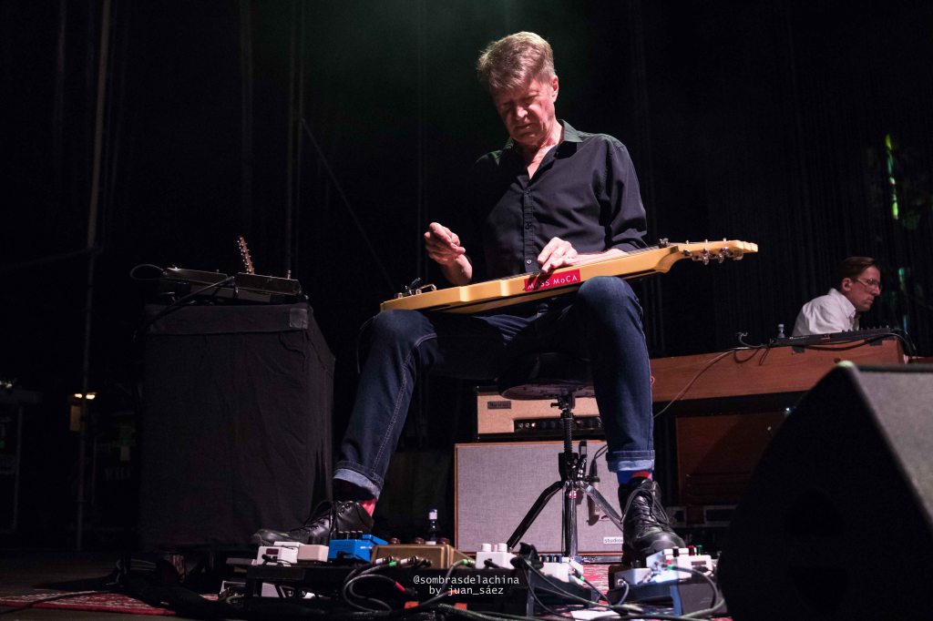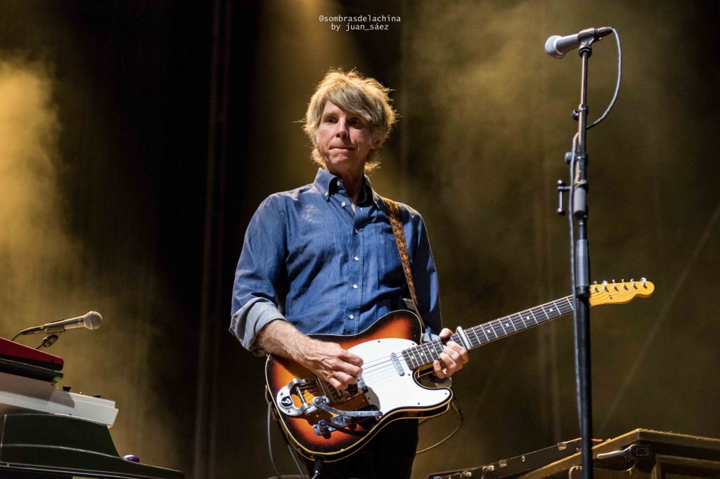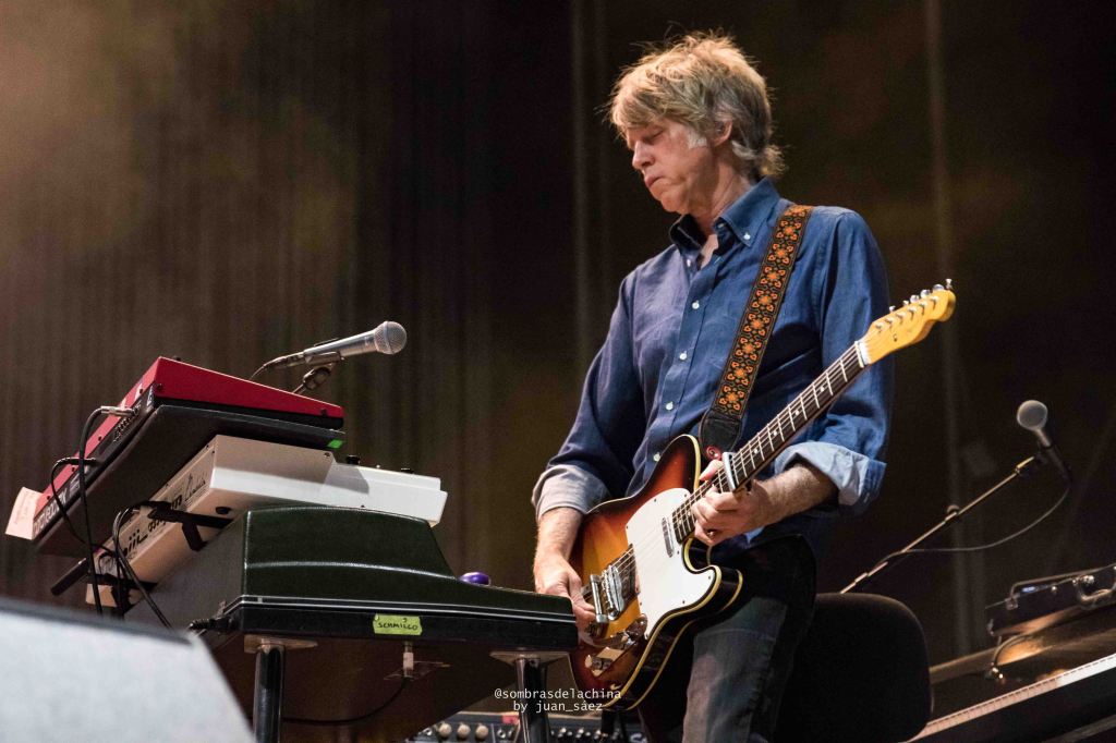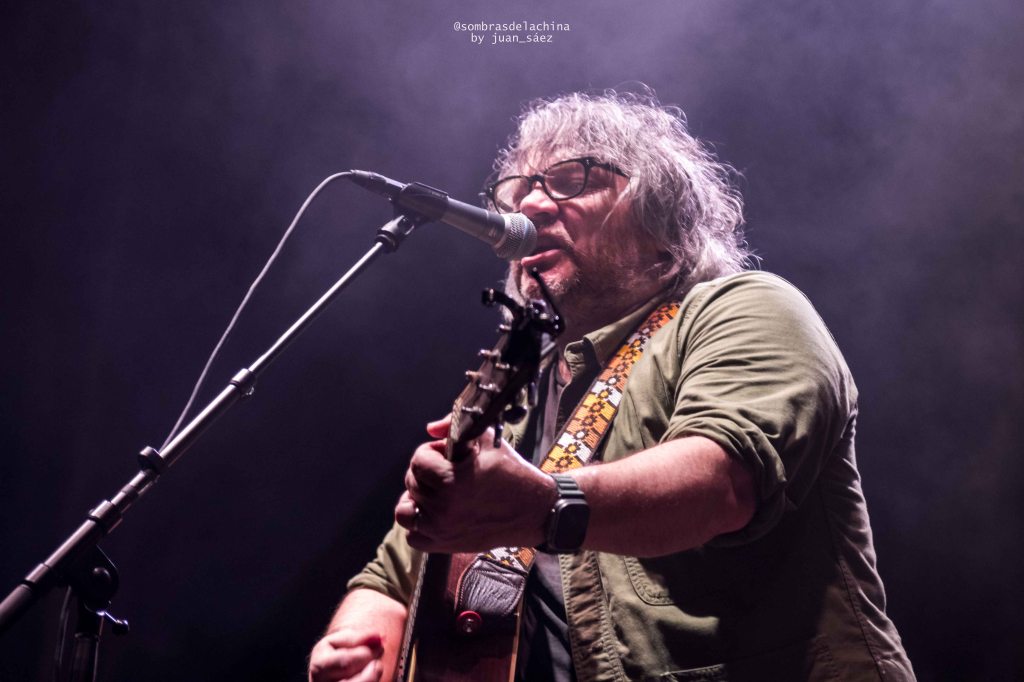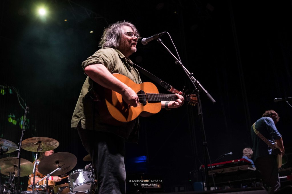Tras su actuación entraron en escena los integrantes de Wilco con un Jeff Tweedy que parecía haberse levantado de la siesta, su aspecto desaliñado contrastaba con la elegancia que la banda emana en cada una de sus composiciones. Arrancaron con su hipnótico tema Handshake Drugs que finalizó con su dosis de esquizofrenia noise con el que la banda salpica sus temas creando unos paisajes sonoros de grandes contrastes. Los de Chicago continuaron por la línea más suave y folk con los temas «Story to tell«, «I am my Mother», «Cruel Country», y «Hearts Hard to find», todos ellos temas pertenecientes a su espectacular último doble álbum, editado en 2022, Cruel Country, una auténtica lección de ortodoxo country-folk.