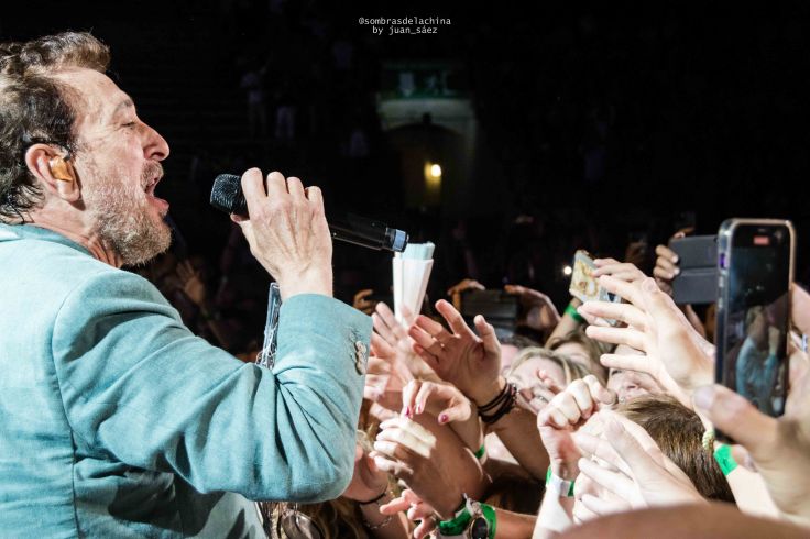 Con los primeros acordes de “Insurrección” caía una tela tras la que aparecía el cantante y el público enloquecía. A continuación sonaron temas del doble último disco “Mi vida en Marte” y “Desatinos Desplumados”, pero también de los anteriores trabajos de MANOLO GARCÍA, y por supuesto éxitos de El Último de la Fila.