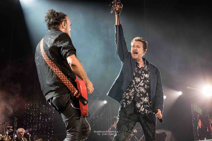 Volvieron a aparecer sobre el escenario los embudos, y los utensilios de cocina, y es que MANOLO GARCÍA no ha perdido nunca su esencia, como tampoco ha perdido la raíz flamenca que envuelve y amplifica las historias cotidianas que cuenta Manolo desde la fuerza y la energía del rock de la calle. Una raíz flamenca que en esta gira está expresada, además de la música y las letras, por la enorme bailaora Coral Moreno que acompaña a Manolo en varios de los temas y que nos dejó a todos boquiabiertos, llegando incluso a quitarle el protagonismo al propio cantante en algunos momentos del espectáculo. Un juego de movimientos que se apoyan en las telas y el vestido, envolviendo al cantante y a la bailarina al son de la música, han conseguido que Manolo y Coral hayan elevado «Aviones Plateados» al Olimpo de los dioses. Vaya descubrimiento el de Coral que está a la altura de unas canciones que han sido himnos para varias generaciones. Seguiremos de cerca a la malagueña.