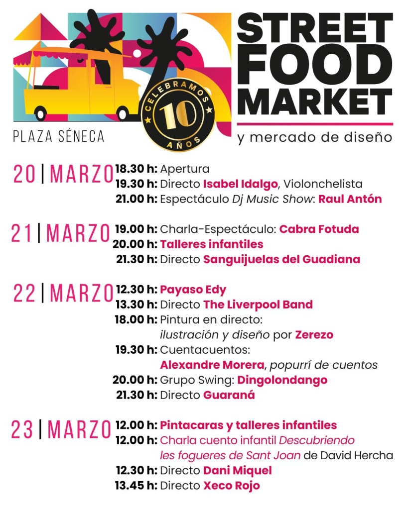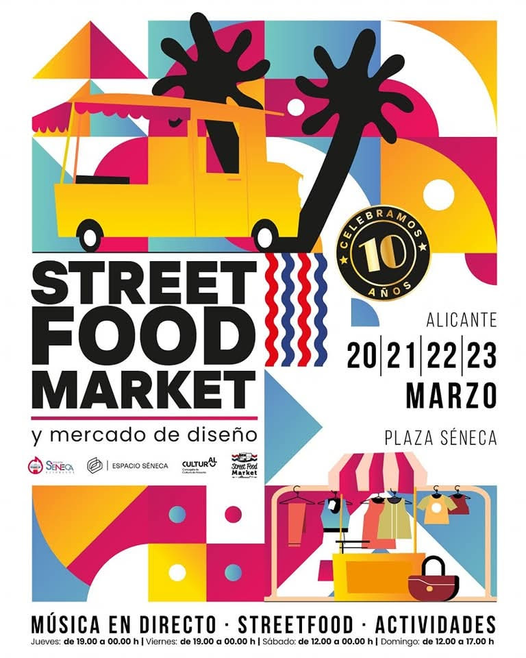 El jueves 20 de marzo a las 18h comenzará el décimo aniversario del Alacant Street Food Market con un total de 12 foodtrucks vintage y se podrá disfrutar hasta el domingo 23 de marzo a las 17h en la Plaza Séneca.