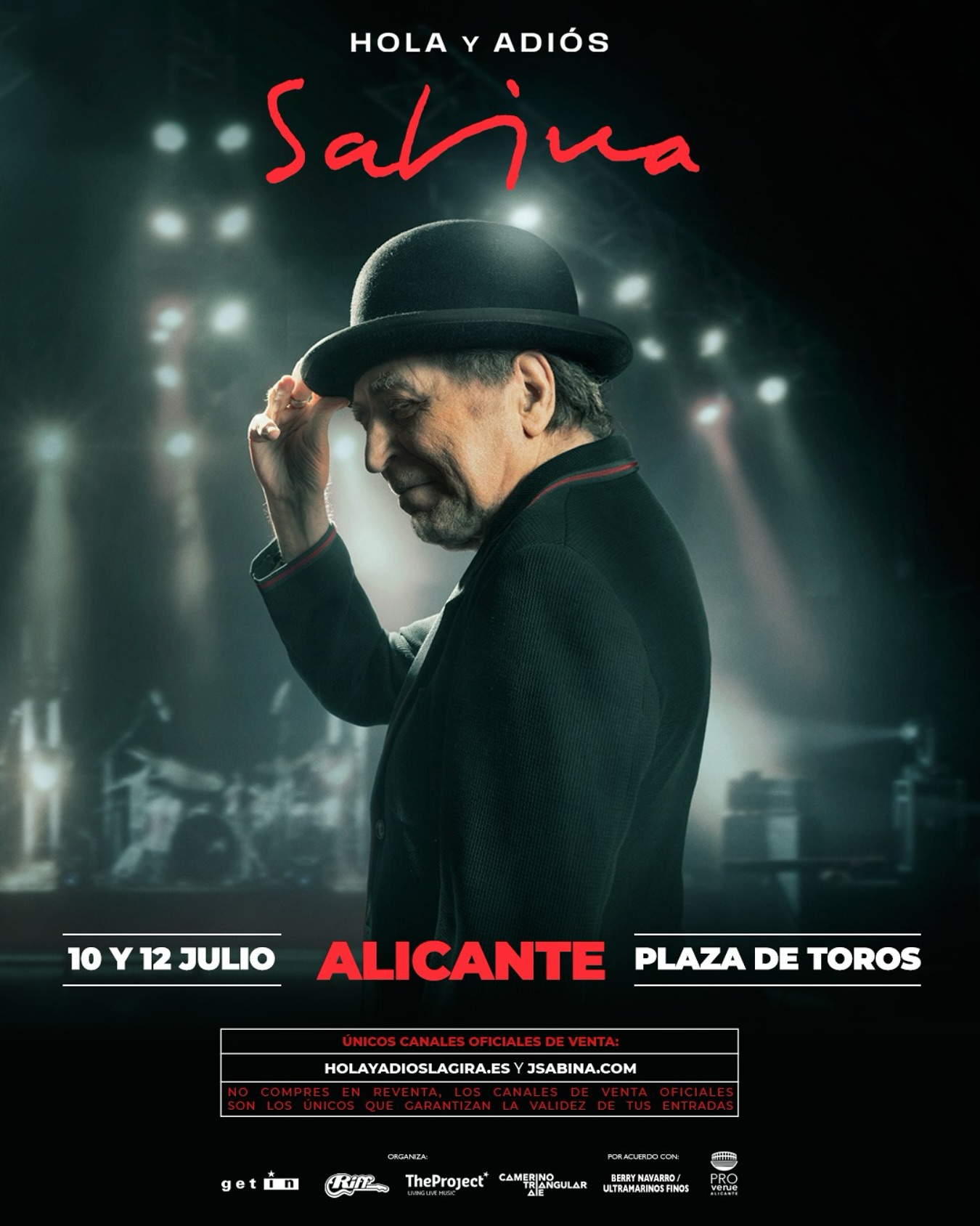JOAQUÍN SABINA dará una última vuelta al ruedo del coso alicantino el próximo sábado 12 de julio, tras la faena del jueves 10 de julio; una doble sesión en la que el maestro de Úbeda se cortará la coleta.